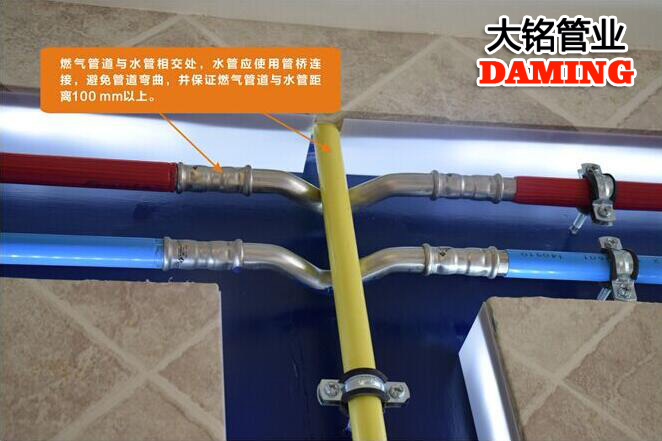 驗(yàn)收技巧:燃?xì)夤艿琅c水管相交處,水管應(yīng)使用管橋連接,避免管道彎曲,并保證燃?xì)夤艿琅c水管距離100mm以上。